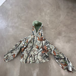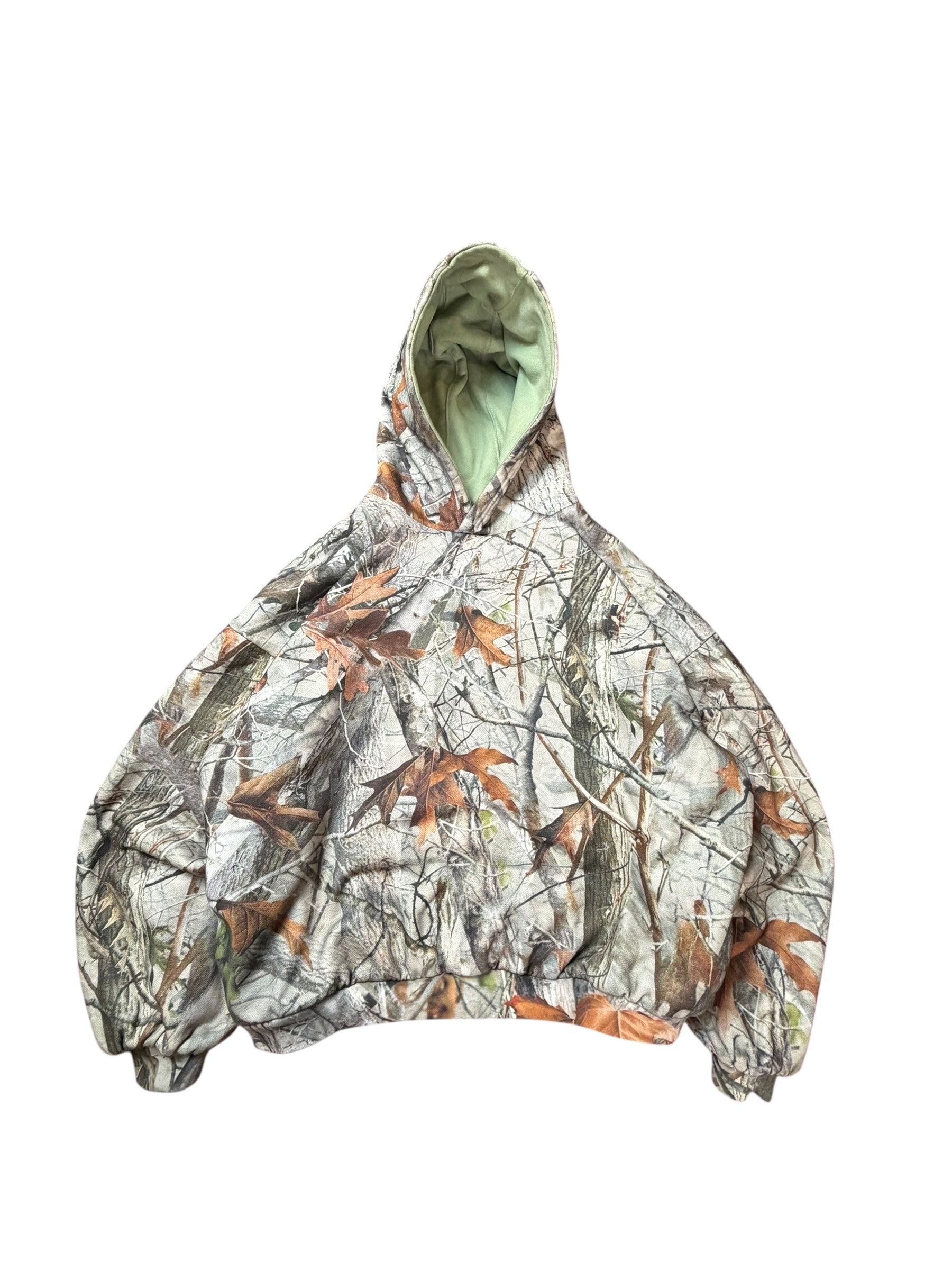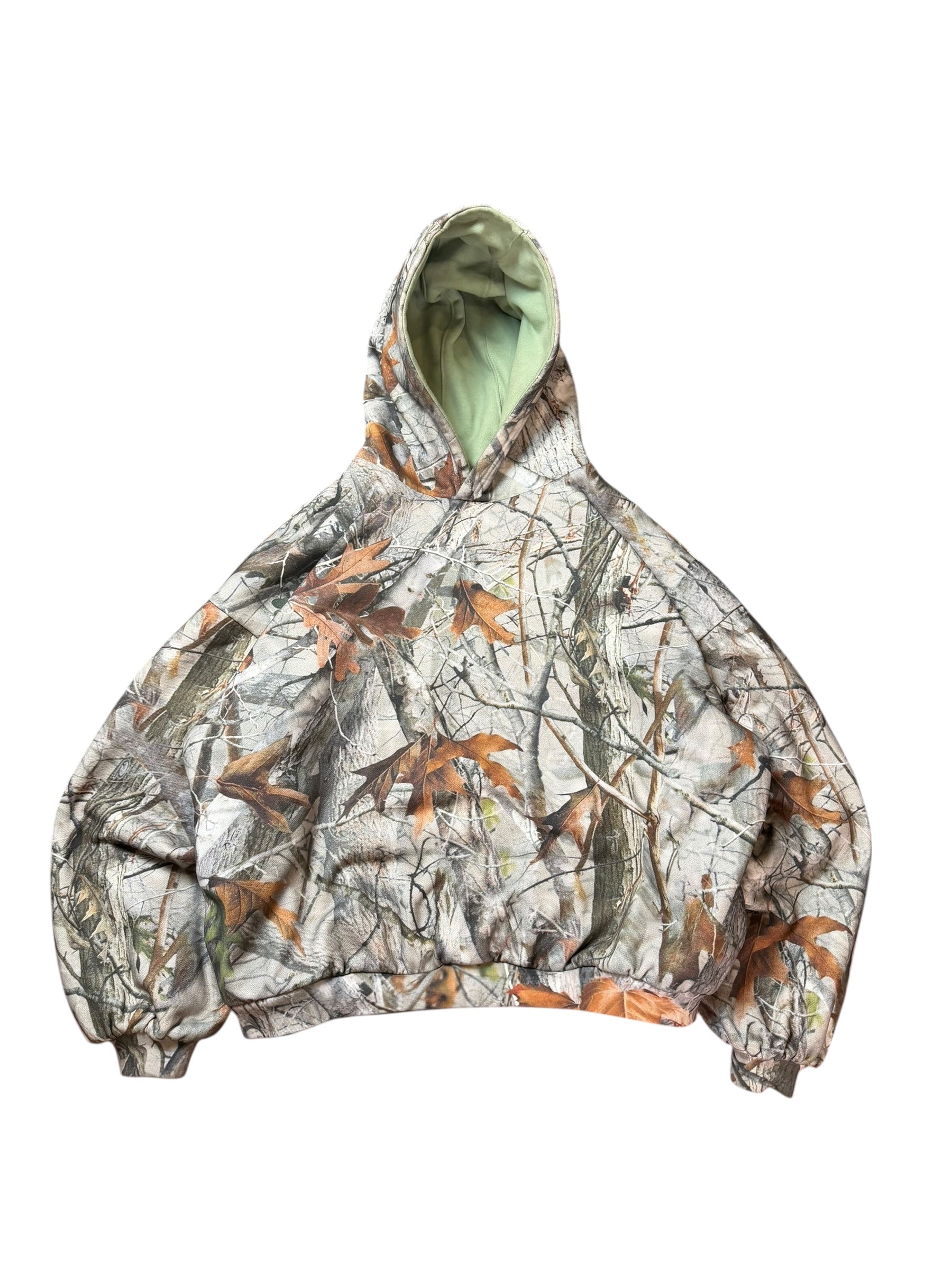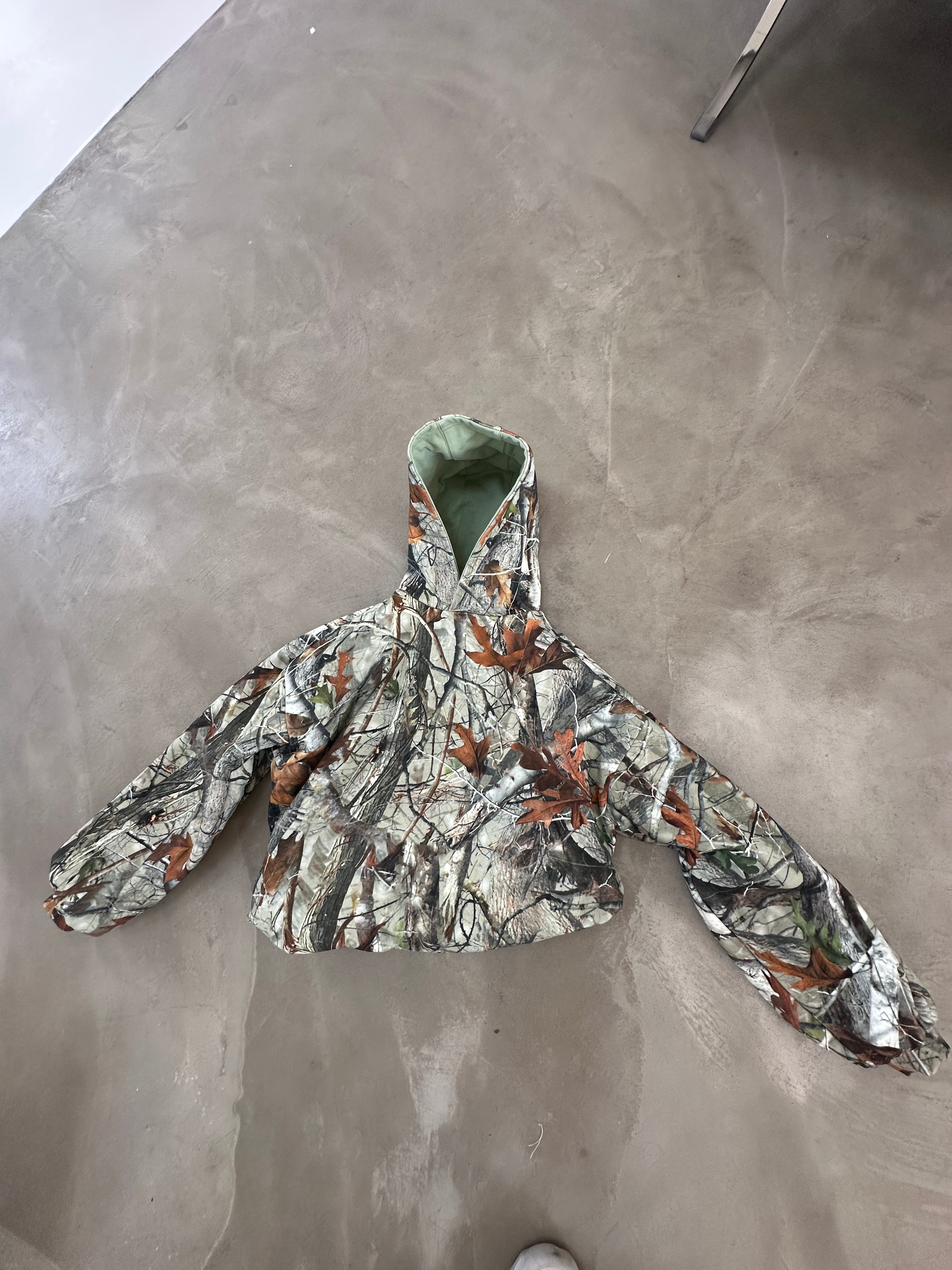 Reversible - One side is a light misty green, whilst the other is a woodland pattern