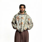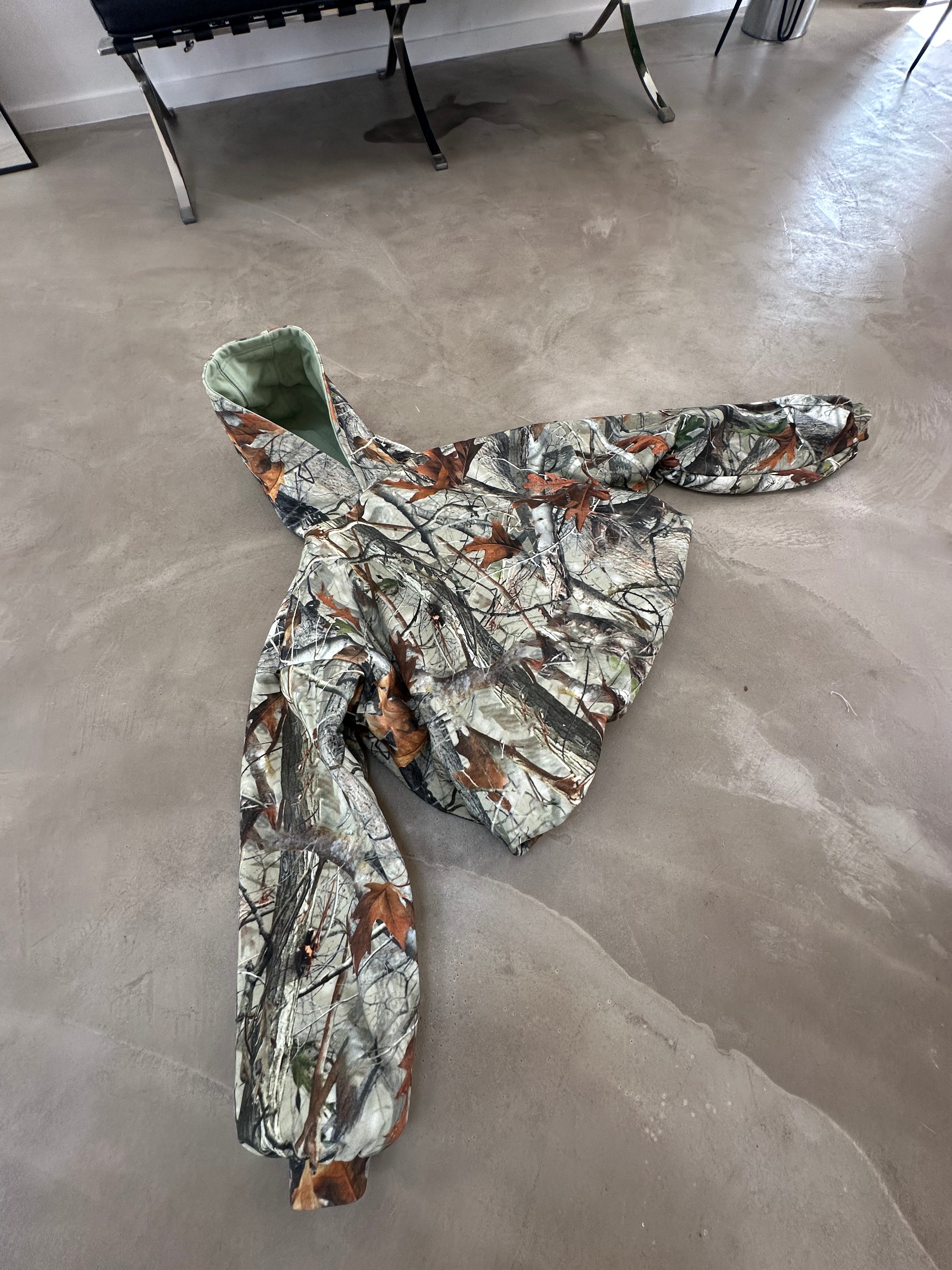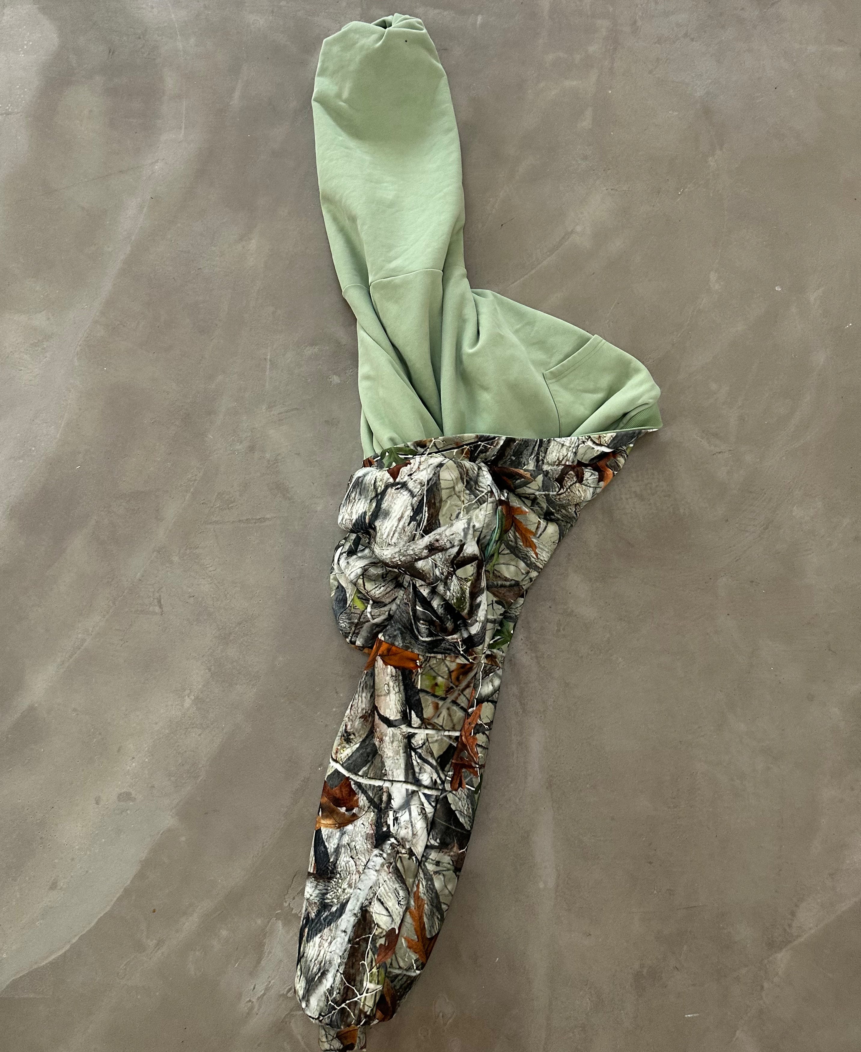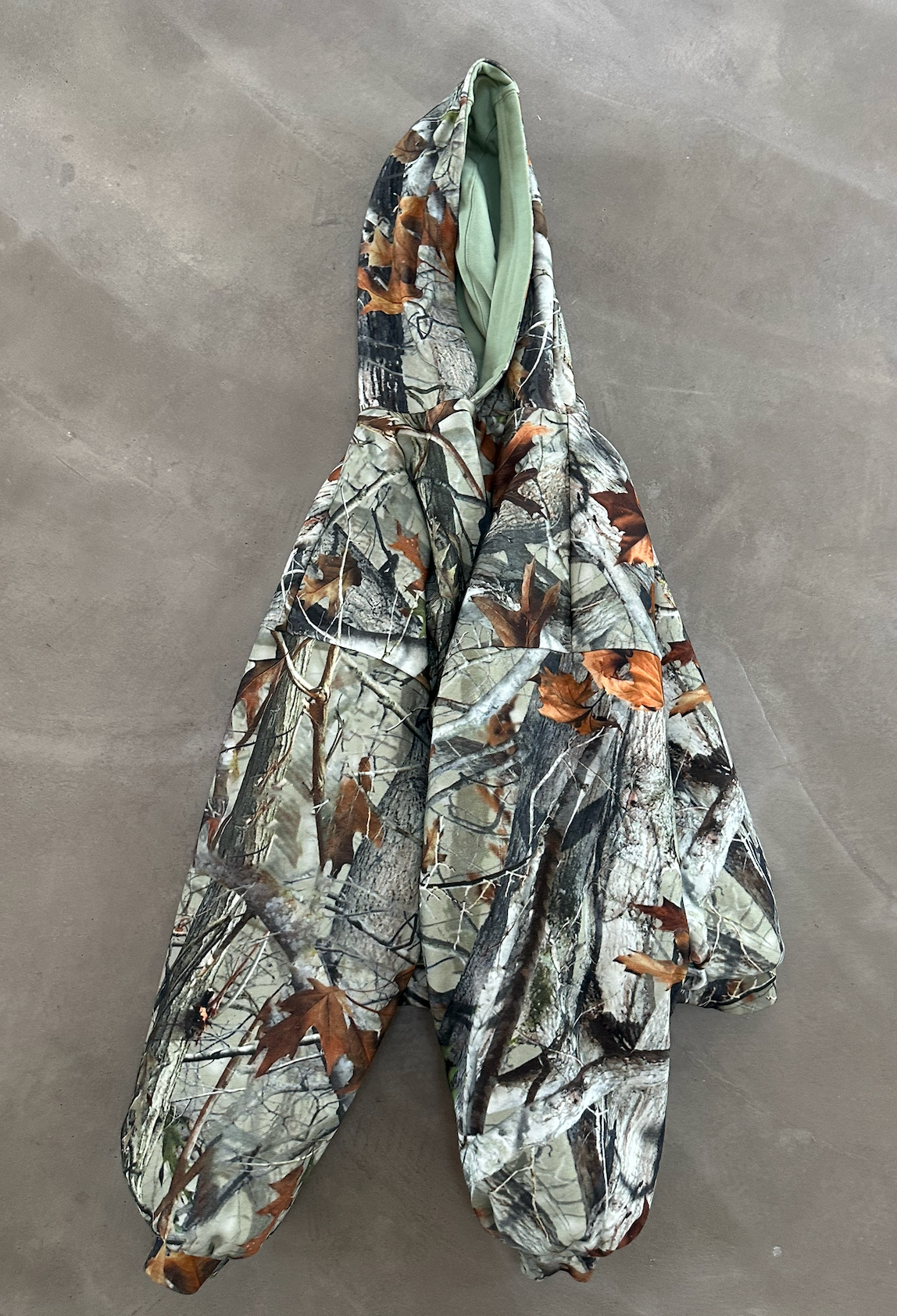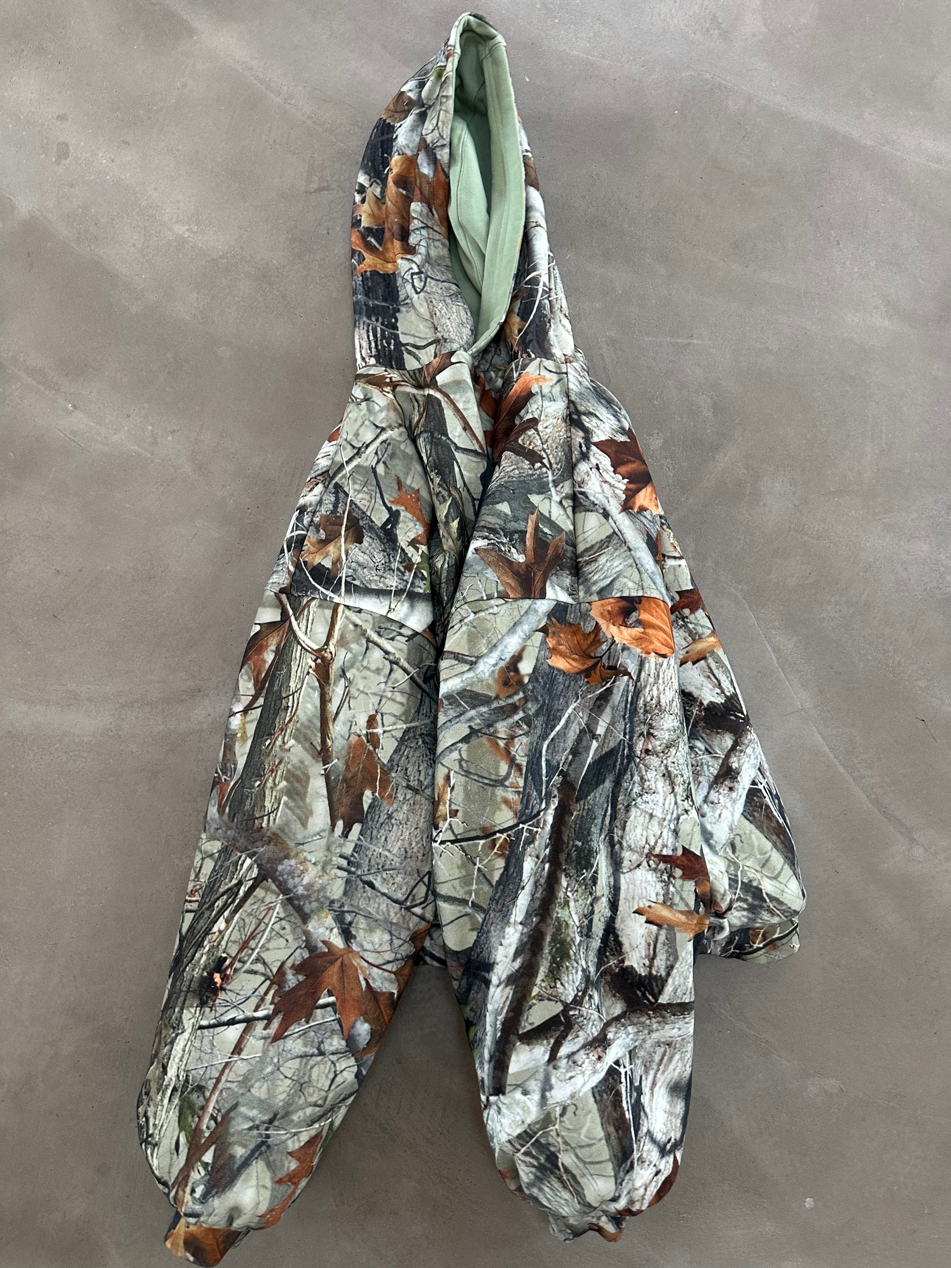 Reversible - One side is a light misty green, whilst the other is a woodland pattern