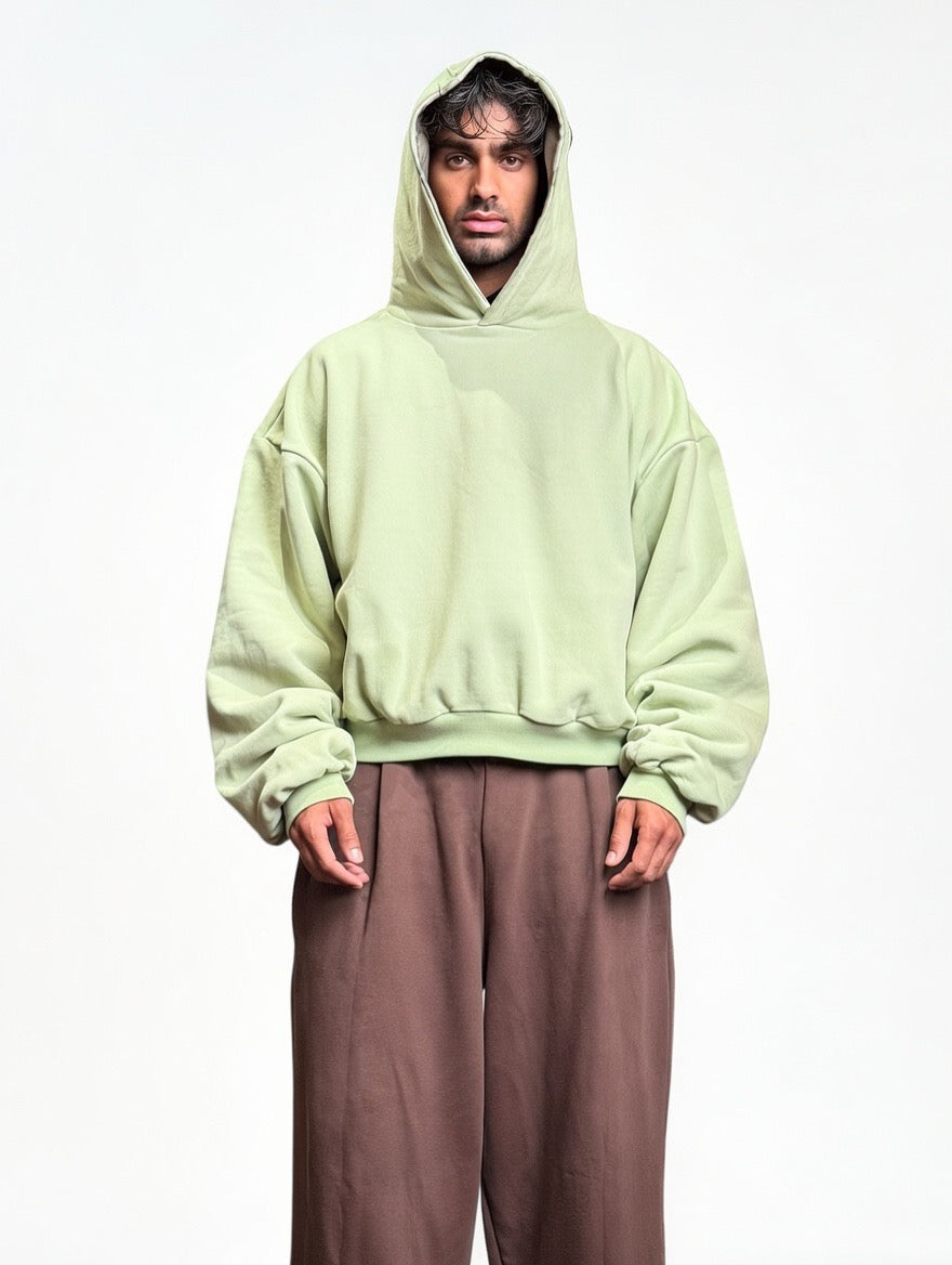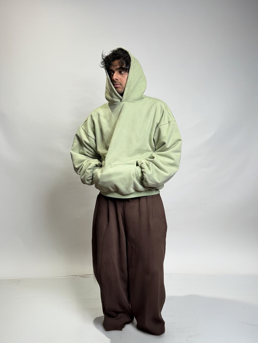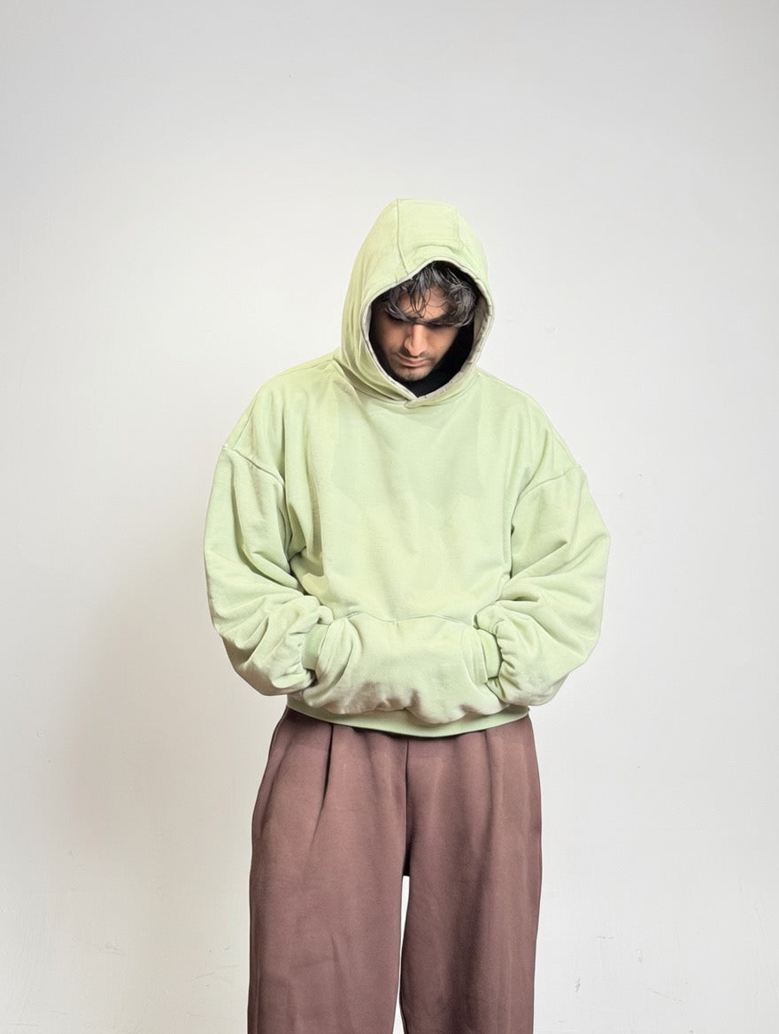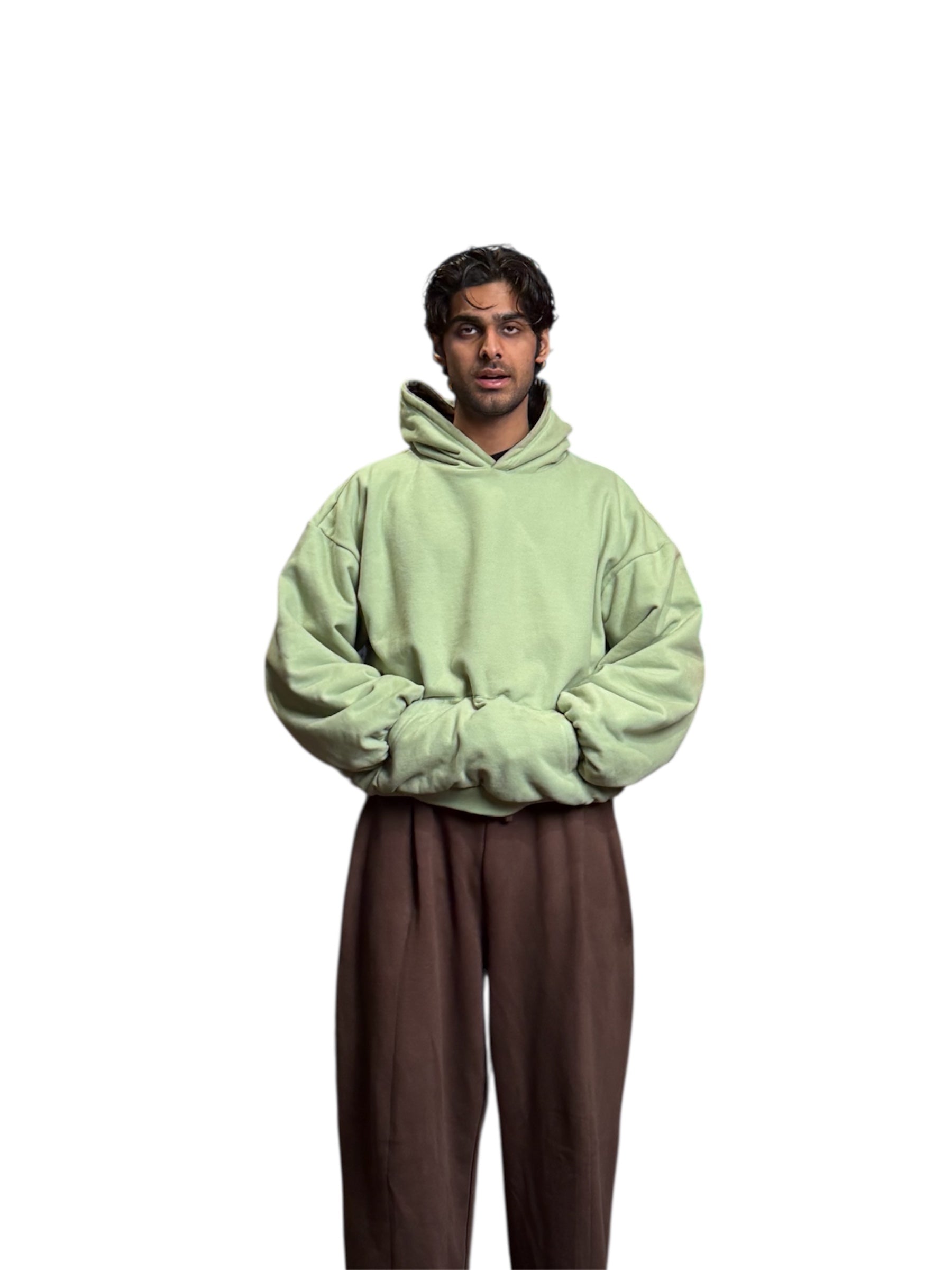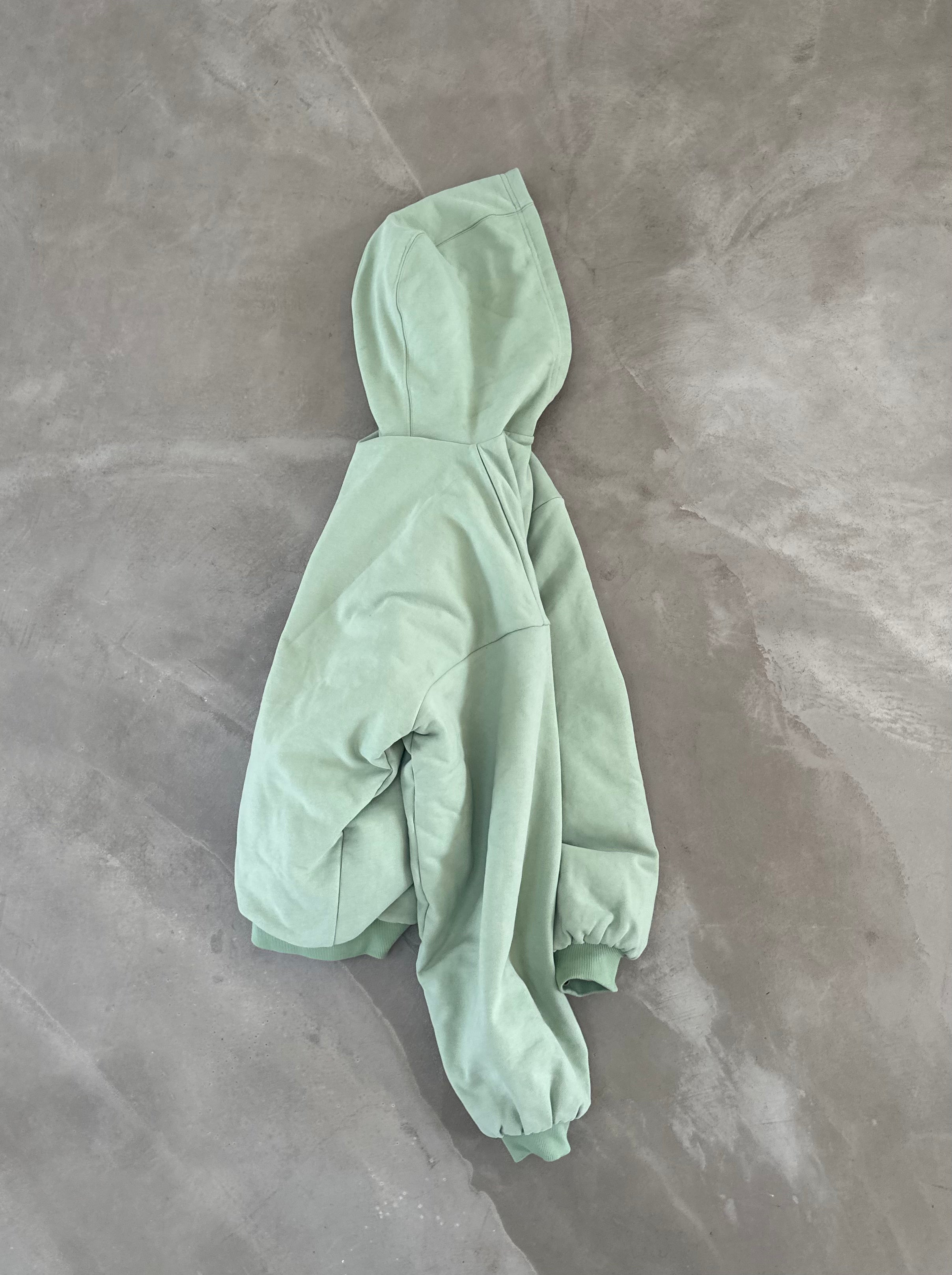 The second version of our 1000GSM double layered hoodie and the first time we have developed it as a reversible hoodie. Back in 2022 we created our first version, and in 2025 we have revisted it. We decided to make the hoodie a lot more bulky, both the body and the arms are a lot wider. As the hoodie is 100% cotton, it does not have the puffy feel that our polyester/cotton blends have. However the garment is a perfect oversized baggy hoodie with the additional benefit of it being reversible.