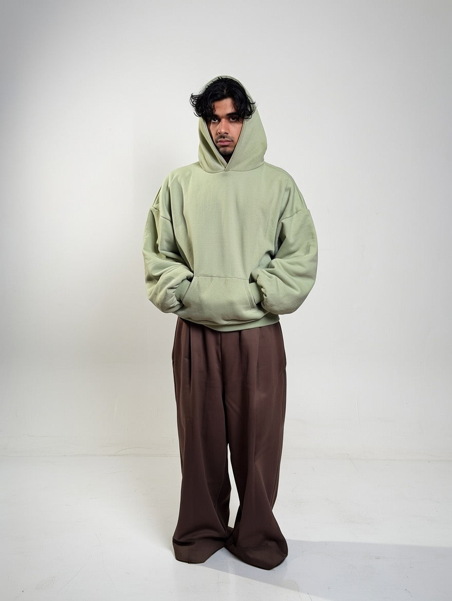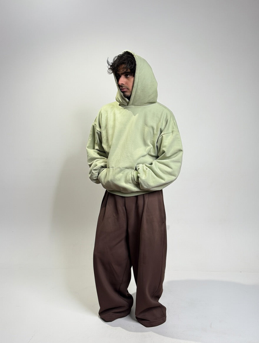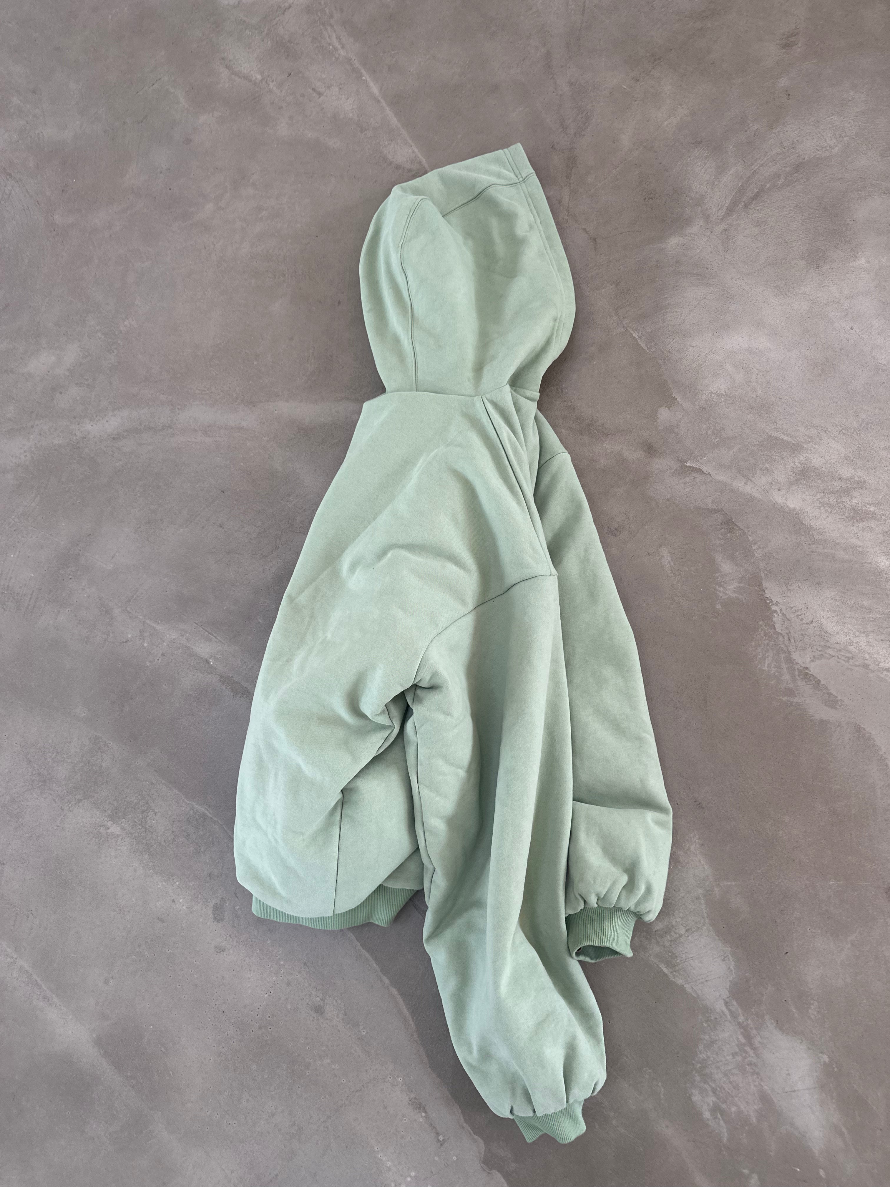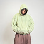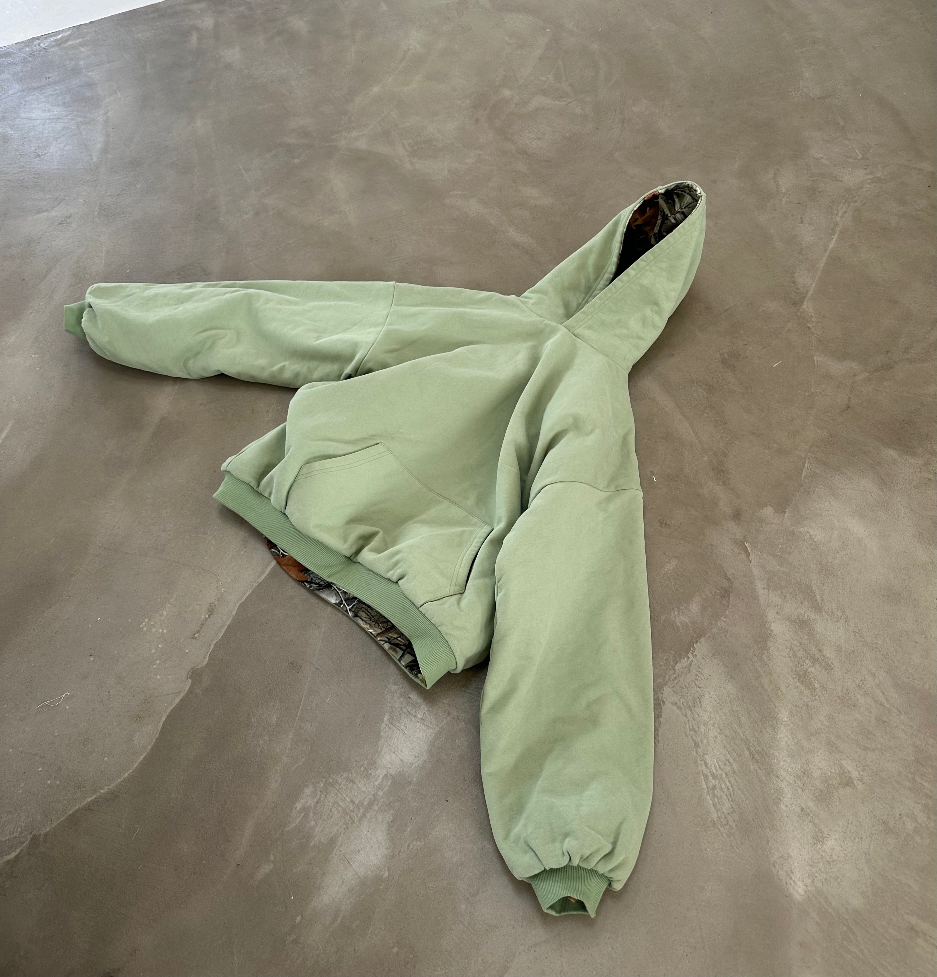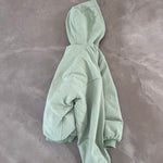 The second version of our 1000GSM double layered hoodie and the first time we have developed it as a reversible hoodie. Back in 2022 we created our first version, and in 2025 we have revisted it. We decided to make the hoodie a lot more bulky, both the body and the arms are a lot wider. As the hoodie is 100% cotton, it does not have the puffy feel that our polyester/cotton blends have. However the garment is a perfect oversized baggy hoodie with the additional benefit of it being reversible.